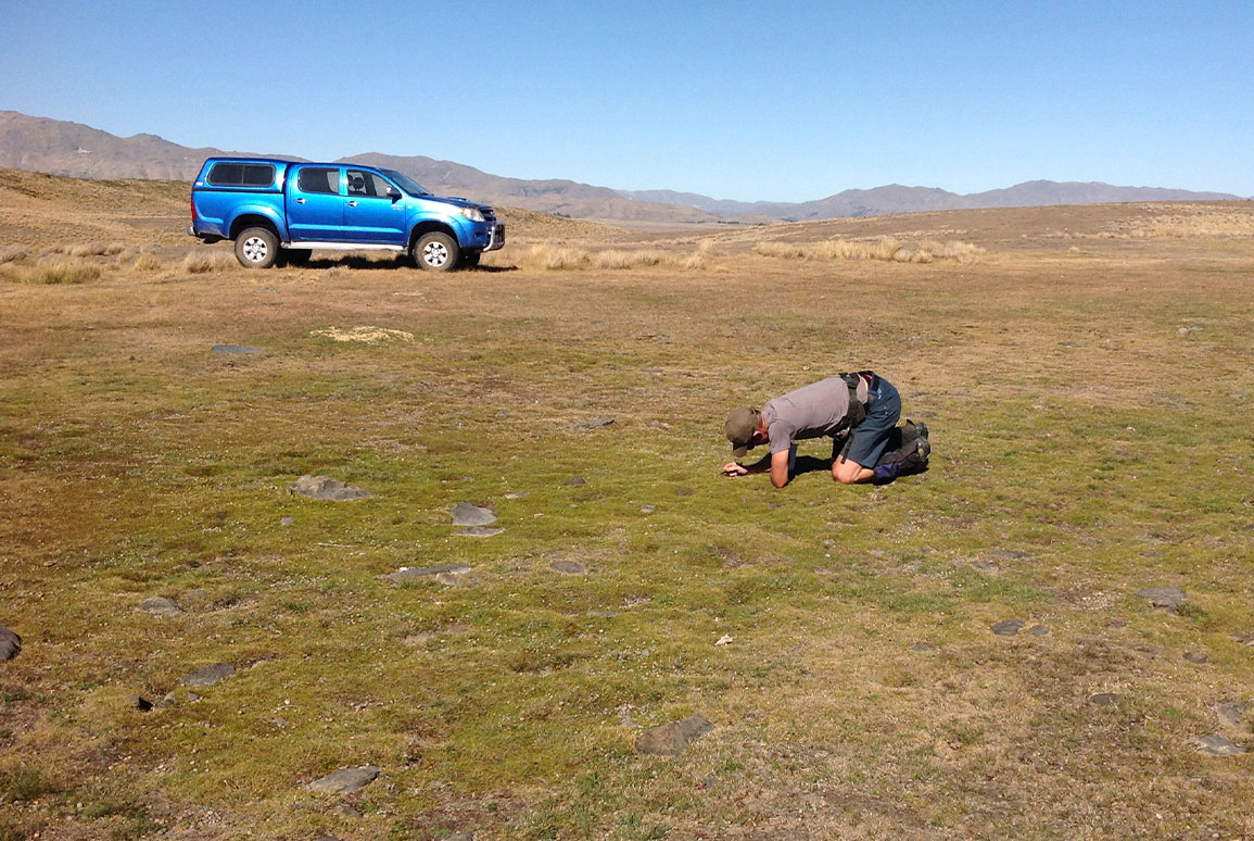 The MacKenzie Basin, in inland Canterbury, is well known for its iconic landscapes with tawny brown tussock, turquoise glacier lakes, wide-open skies and the ‘backdrop of the snow-covered Southern Alps / KaTiritiri-o-Te-Moana. Its ‘desert-like’ character is a result of the climatic extremes it experiences, from freezing cold winters with frost and snow, to stinking hot summers with low rainfall. What many people may not know is that this landscape supports a huge diversity of unique and incredibly interesting native plants, many of which are very small and hard to spot.
