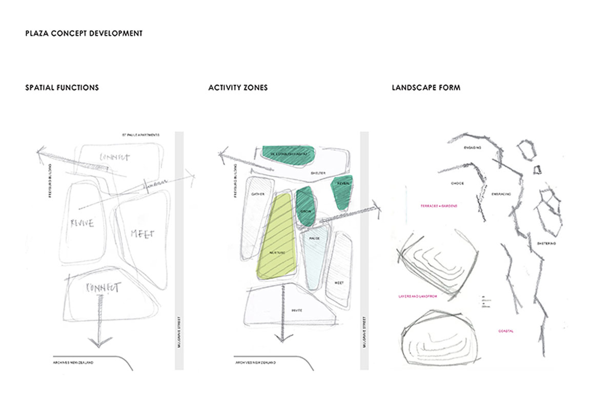 Boffa Miskell designers have been consistently involved through the co-design process. In the plaza, the form of which references the Wellington coastline and bush-covered hills beyond, visitors will see references to the original pipi beds, gardens and kumara mounds that supported the once-extensive Pipitea Pā .