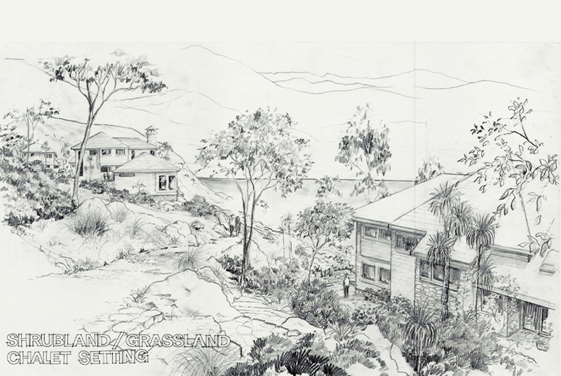 As the 154ha site was specifically zoned for a Tourist Resort, the application documentation was to provide sufficient information to enable the Hearing Committee to make a decision on the Masterplan. The graphics were prepared by Steve Drakeford, a landscape architect from Boffa Miskell’s Wellington office who has now retired.