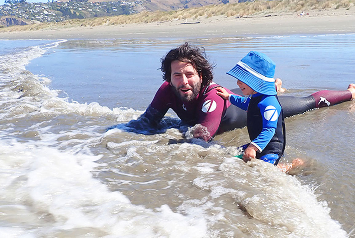 Unsurprisingly, the ocean is a preferred playground for Tommaso and his family. “My wife and my son are also ocean lovers and we live by the beach here in Southshore. We spend lot of time walking, playing in the sand and splashing in the waves. My wife and I used to do lot of tramping, but at the moment with a 18-month-old we stick to day walks.”