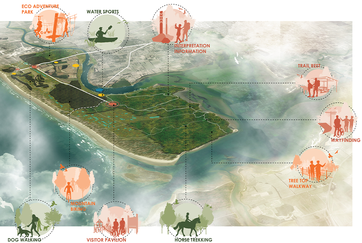 The judges noted, “Engagement with stakeholders and partnership with Mana Whenua Waihōpai Rūnaka and Te Ao Marama Incorporated has informed masterplan outcomes. Consideration has been given to diverse conditions, recreational eco-adventures and eco-parklands, wetlands, native planting and forested areas, existing areas of significant biodiversity, the Ōreti River and riparian areas and coastal environments.