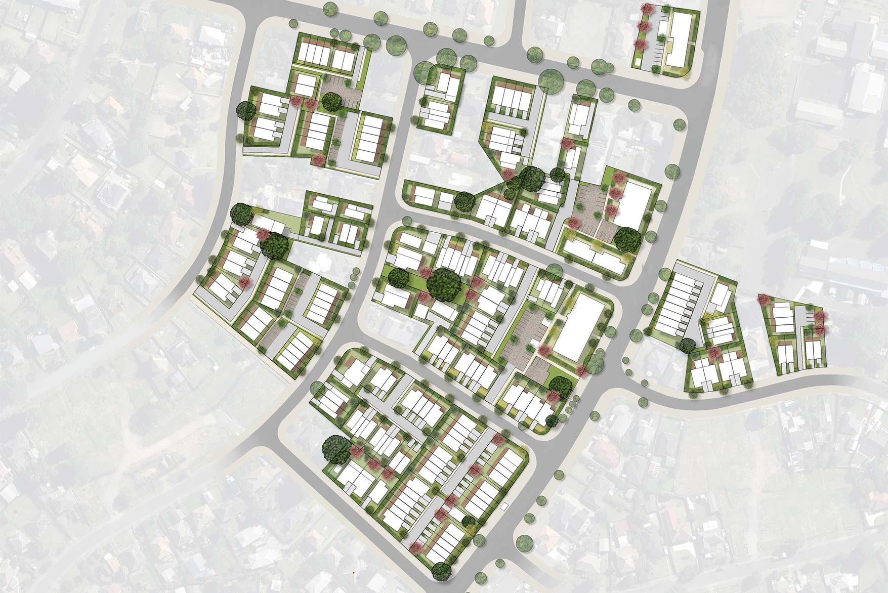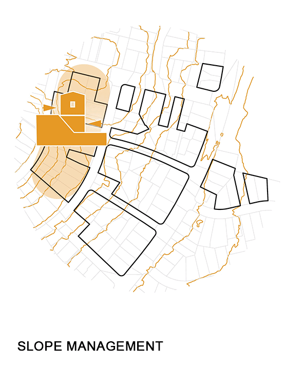 Through a series of workshops, our team applied expertise in medium-density masterplanning and best-practice urban design to develop a vision for the site. The layout promotes high-quality outcomes, good sunlight access, and effective slope management.