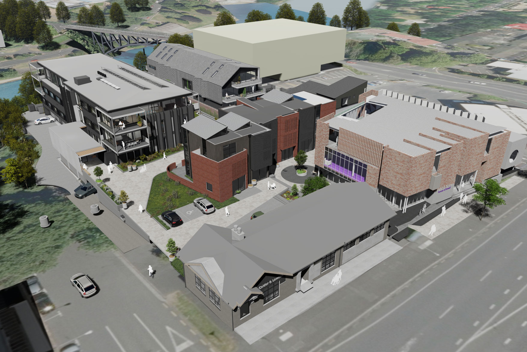 Situated on a prominent location adjacent to Waikato River and close by to Hamilton’s CBD, Hills Village will facilitate the adaptive reuse of the existing building and activate a largely vacant site; thereby positively contributing to the ongoing revitalisation of Hamilton East.
