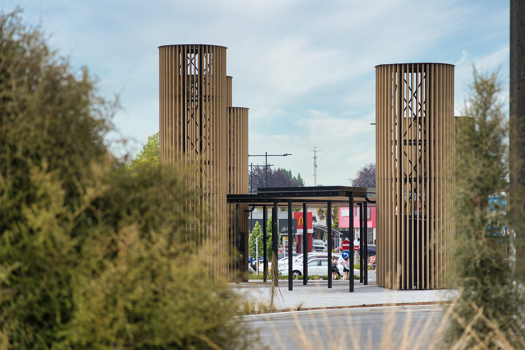 Tokoroa is a small town in the Central North Island of New Zealand. Once a thriving industry town driven by forestry and farming, people have moved to bigger centres resulting in steady decline for the town itself. The redevelopment of Leith Place provides a flexible, visually interesting space to draw people in from the adjacent motorway.