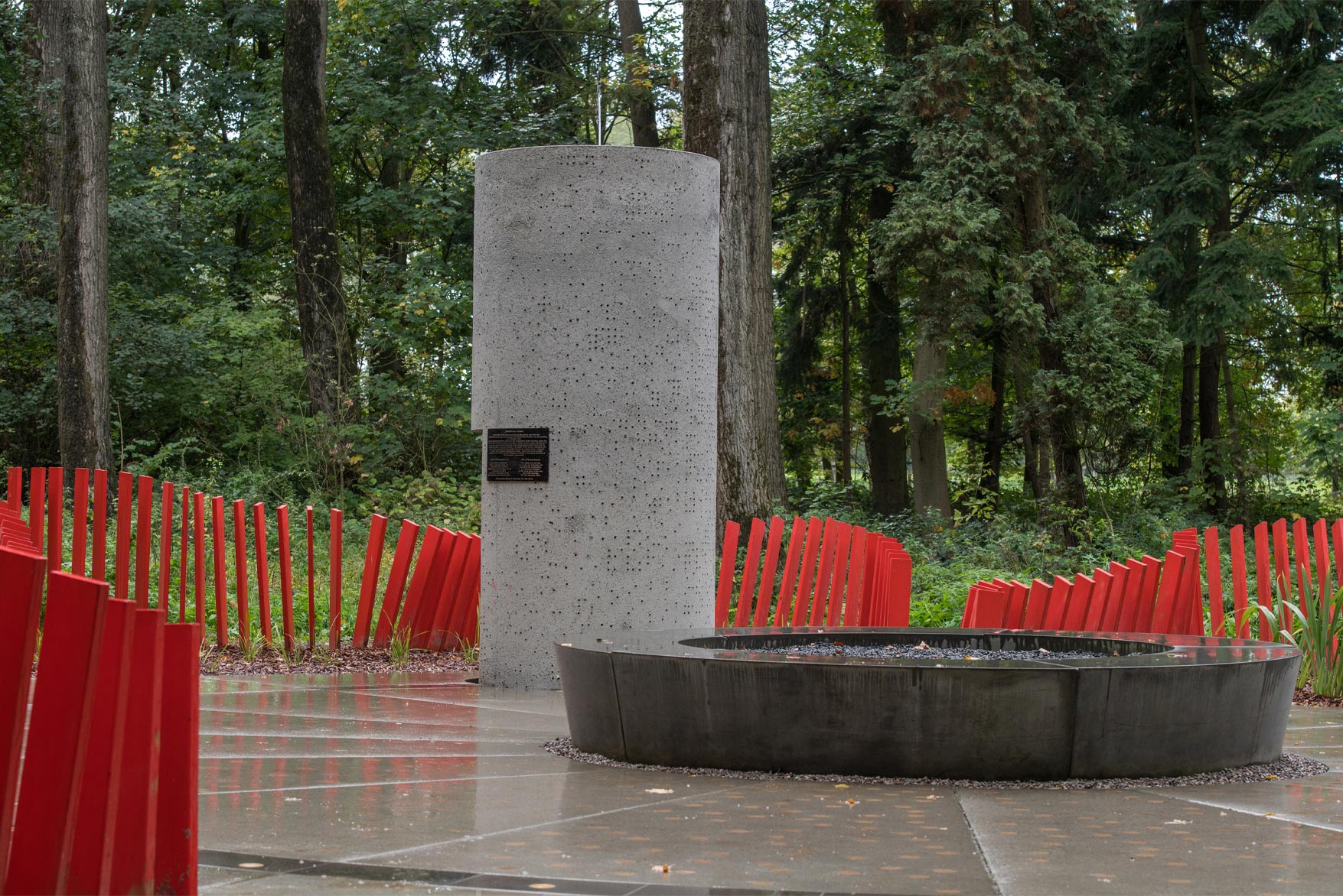 Addressing remembrance through literature, the evocative lyrics of ‘Poppy and Pohutukawa’ are emblazoned in bronze within an arc of Timaru basalt. While the words effectively encapsulate the New Zealand aspect within the overall theme of the memorial gardens, the familiar text will resonate strongly with Kiwis who visit this emotional place.