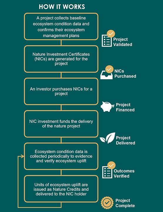 Unlike sponsorships and donations, nature credits allow businesses to make verified nature related claims. Each nature credit represents a real, verified improvement in the health of local ecosystems, as measured by scientists and backed by internationally accredited frameworks.