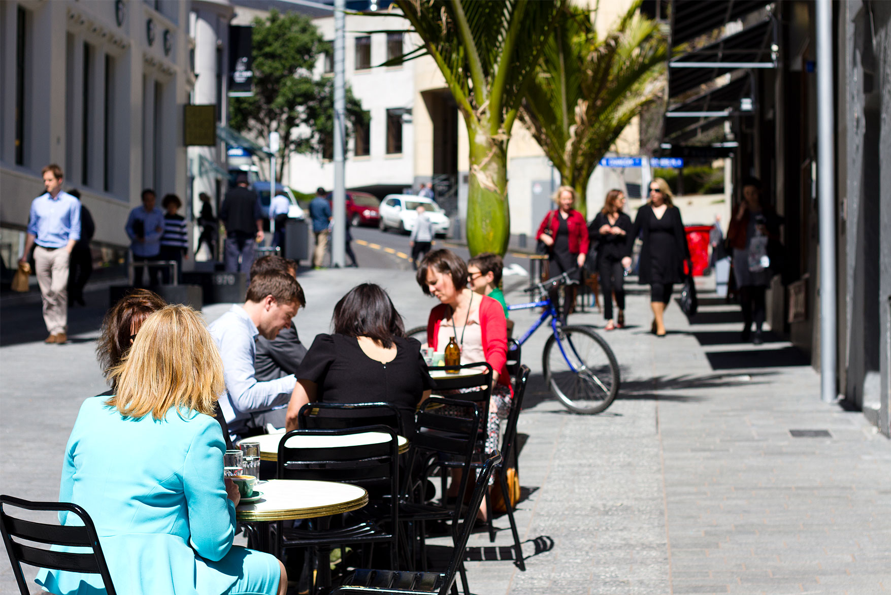 The upgrade of O’Connell Street presented a number opportunities to transform the streetscape while preserving the heritage architecture. Boffa Miskell landscape architects worked with Auckland Council Heritage officers, New Zealand Historic Places Trust and the project archaeologist to highlight particular features of the social and urban history and enhance views of the unique architecture and façades.