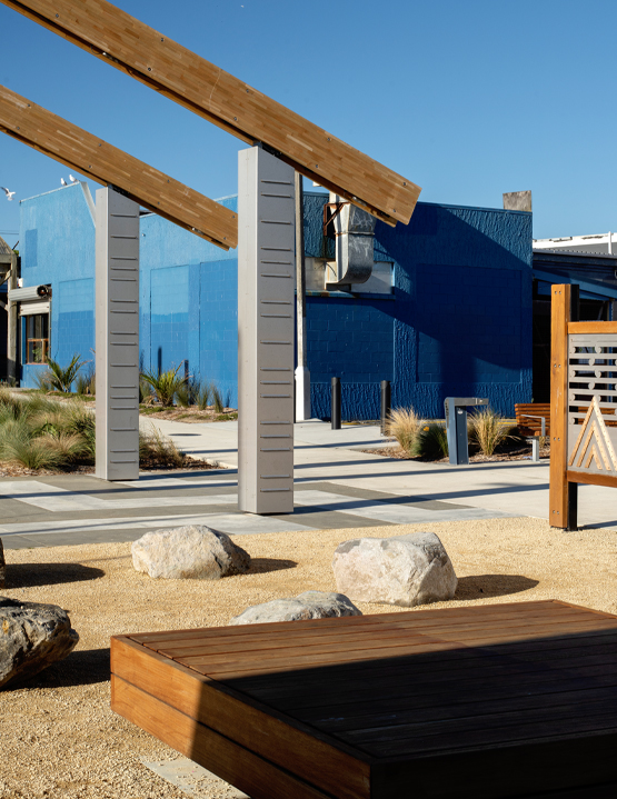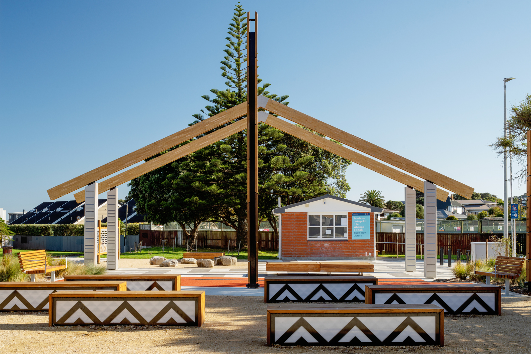 Borrowing ideas from the hall’s varied historical use, including cinematic projection and theatre; and recalling that the land on which the hall was located is important to Ngāti Toa, we worked with the council and local iwi to create a welcoming outdoor space that could accommodate aspects of the activities that the hall had once hosted.