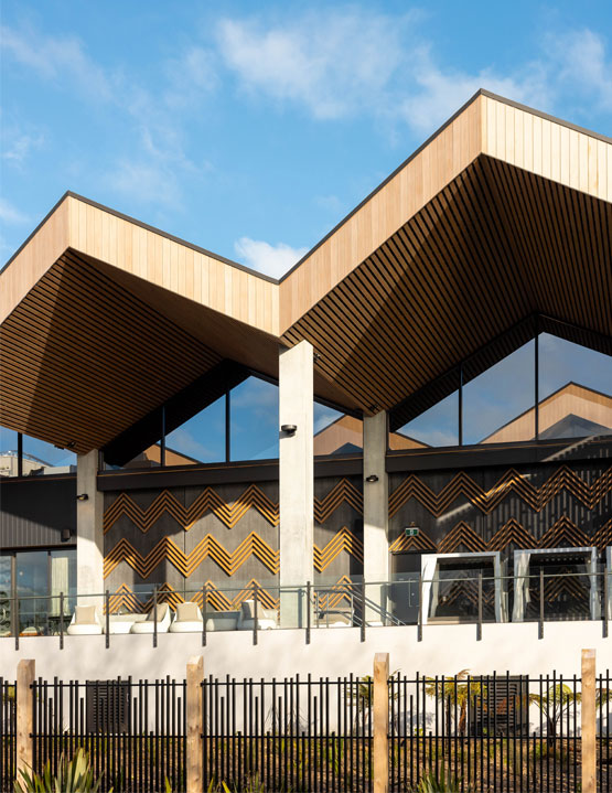 The building is bold, designed to be a feature in the landscape, while the landscape response is authentic in terms of materials, planting, and layout, both internally, and externally. The planting complements the architecture of the building, but it also settles the dynamic building into the natural landscape surroundings to ensure it belongs within the context of the Rotorua lakefront.